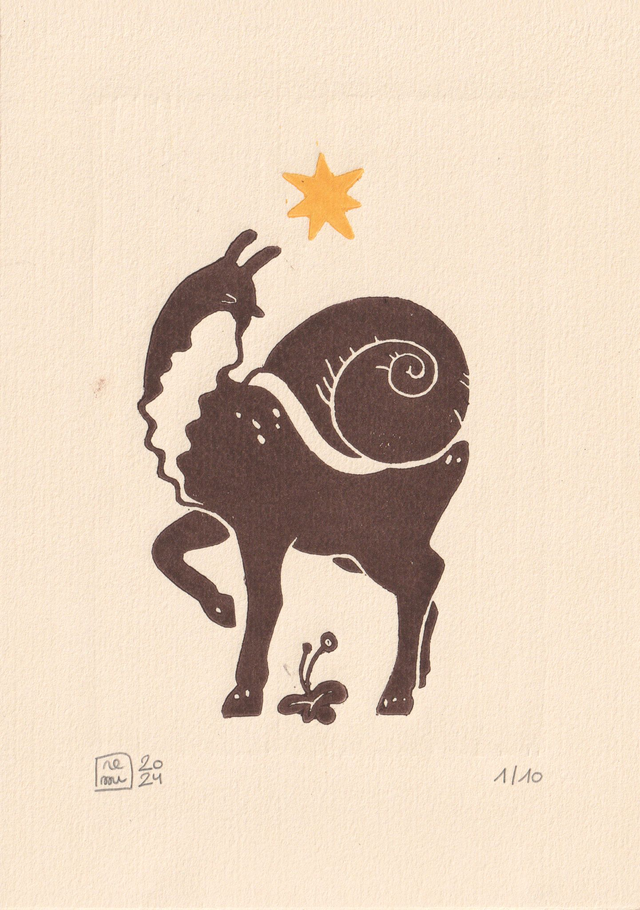 Handmade and hand printed linocut print.