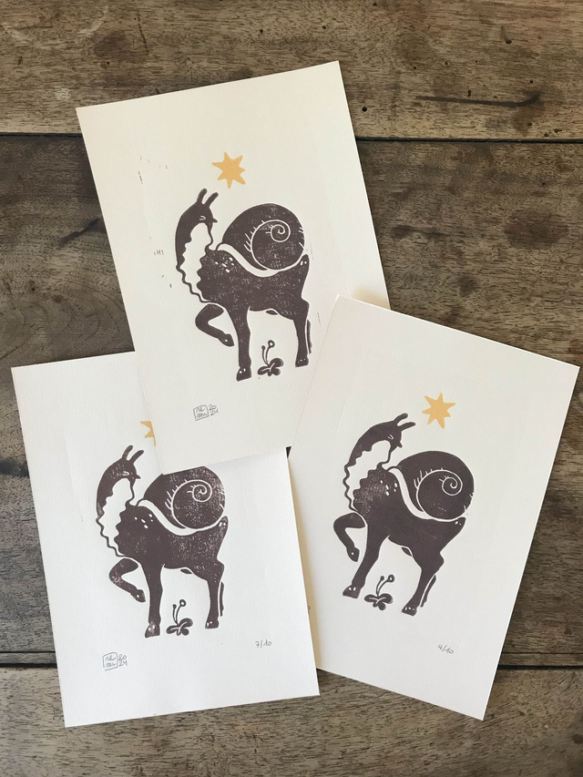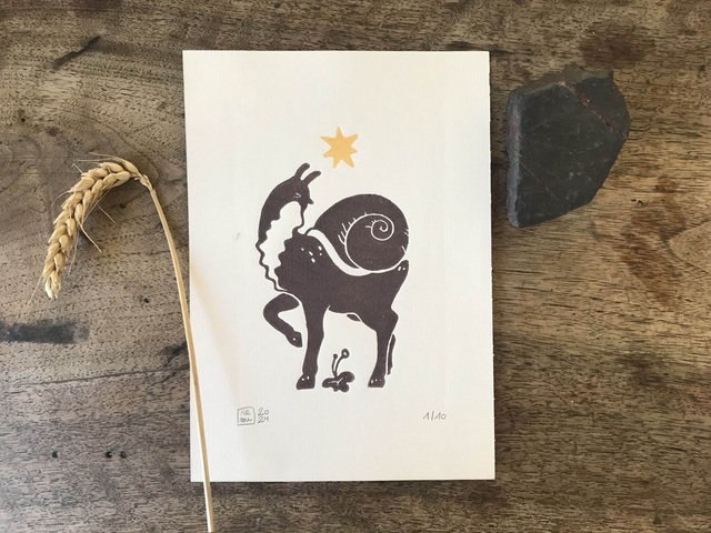 Linogravure réalisée et imprimée à la main