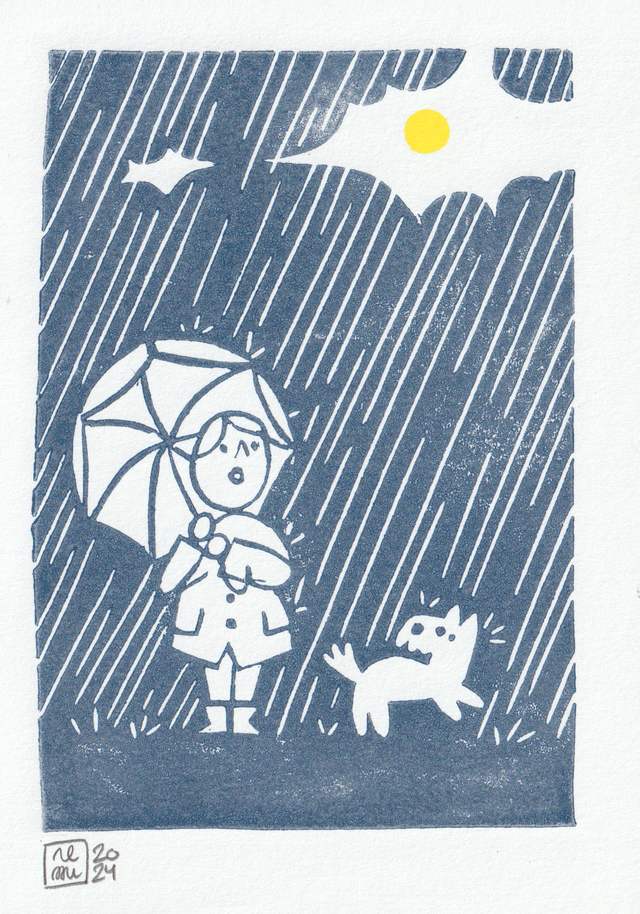 Linogravure réalisée et imprimée à la main.